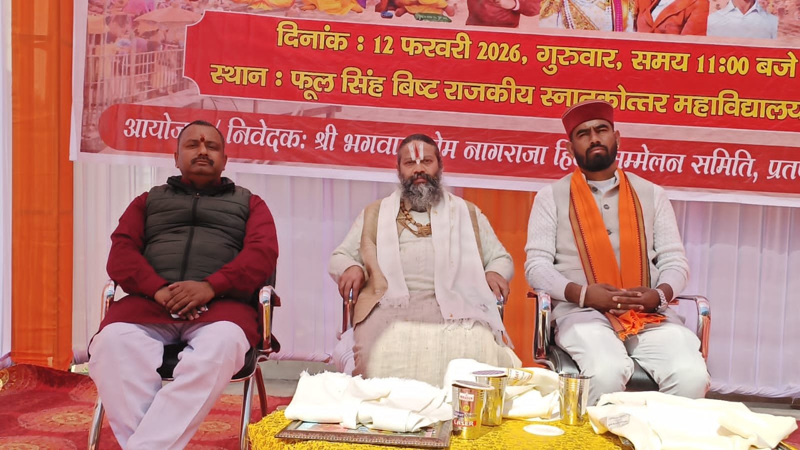 फूल सिंह बिष्ट राजकीय स्नातकोत्तर महाविद्यालय में नगर पंचायत अध्यक्ष रोशन रांगड की अध्यक्षता में श्री सेम नागराज हिंदू सम्मेलन समिति के द्वारा आयोजित हिंदू सम्मेलन के मुख्य अतिथि नैताला एवं दिन्याली देवी धाम के स्वामी रामभद्राचार्य, मुख्य वक्ता आरएसएस के प्रांत धर्म जागरण संयोजक नारायण ने दीप प्रज्वलित कर शुभारंभ किया। उन्होंने भारत माता के चित्र पर पुष्प अर्पित करते हुए हिंदू समाज की संस्कृति, परंपराओं को जीवंत रखने और विभिन्न कारीगरी के माध्यम से स्वयं काम करने वाले लोगों को भारत माता का चित्र और पटका पहनाकर सम्मानित किया। सम्मेलन में सरस्वती विद्या मंदिर, शिशु मंदिर, रामकृष्ण पब्लिक स्कूल सहित अन्य स्कूलों के छात्र-छात्राओं ने देश भक्ति गुणगान से लेकर देवी देवताओं के जागरणों की शानदार प्रस्तुतियां दी। रामभद्राचार्य ने कहा कि धर्म के अनुरूप जीवन का लक्ष्य मानव कल्याण है। लेकिन वर्तमान में अधर्म का प्रचार ज्यादा हो रहा है। मानव धर्म के काम को छोड़कर धन अर्जित करने में लगा हुआ है। सनातन के अनुसार हमारा आचरण, व्यवहार और कार्य कुशल होना चाहिए। मुख्य वक्ता नारायण ने कहा कि हमारी संस्कृति में जितने भी संस्कार है, वह वैज्ञानिक पद्धति पर आधारित है। पूरा विश्व भारत की सनातन संस्कृति से सीखने की कोशिश करता है।भारत विश्व को ज्ञान देने का काम कर रहा है। पंच परिवर्तन का एक बोध है, स्वयं को जानना। जन्मदिन पर अपने बच्चों से केक काटने की आदत छोड़ पेड़ लगाने की आदत डालें। संकल्प करो कि हिम प्रदेश को समृद्ध करें। संघ शिक्षा, स्वास्थ्य से लेकर समाज के परिवर्तन के लिए काम कर रहा है, जिसमें कुटुंब प्रबोधन, सामाजिक समरसता, पर्यावरण, जल प्रबंधन, स्वदेशी, नागरिक कर्तव्य शामिल है।